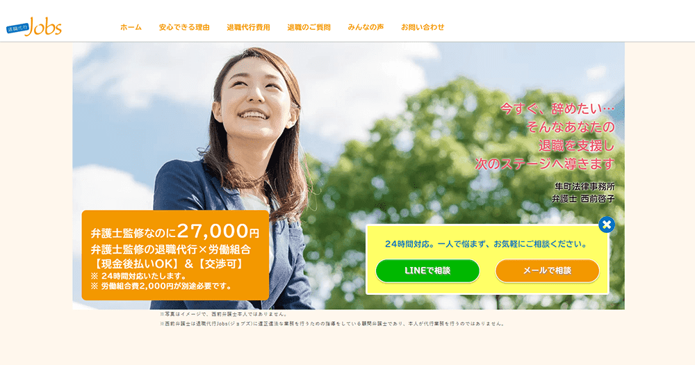 「Jobs」の利用料金は退職代行の相場ですが、サービス内容を加味するとお得なサービスだといえます。