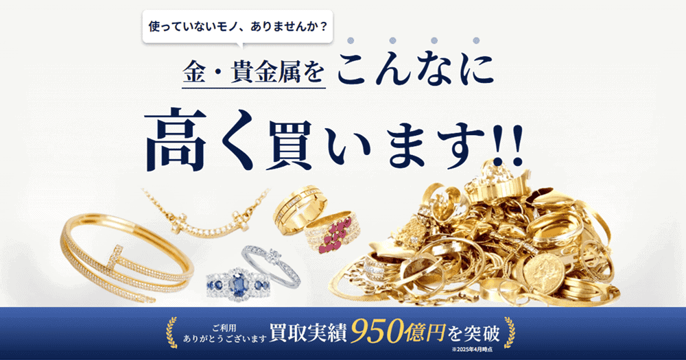 「高く買う」というシンプルなメッセージを打ち出しており、特にカルティエ、ブルガリ、ティファニーなどの人気ブランドをお持ちなら、地金の価値だけでなく「ブランド料」も含めて査定してくれます。