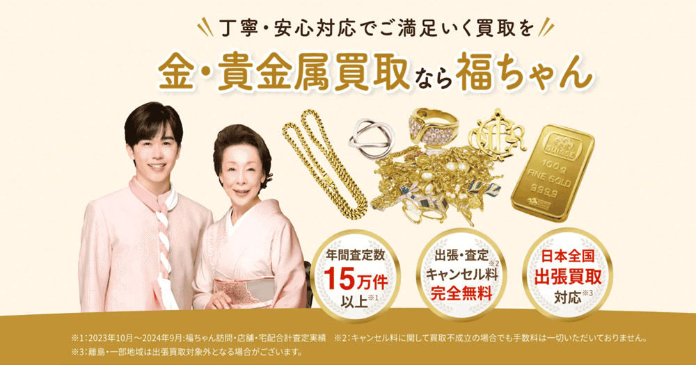 福ちゃんは、CMでもおなじみの知名度抜群の買取店です。公式サイトで明確に「相場×重量だけではありません」と宣言している点が最大の特徴です。