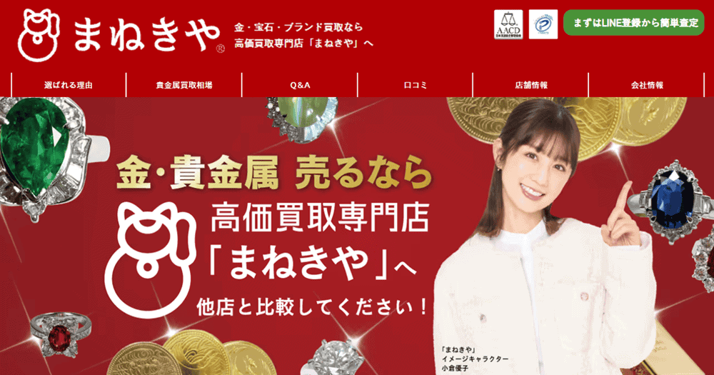 まねきやは、金・貴金属の買取において「高価買取」と「精密査定」を両立させている実力派の専門店です。