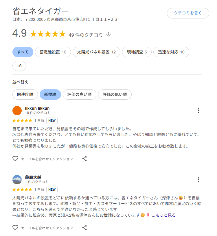 担当者の太陽光・蓄電池の知識が豊富で、対応が親切だったという口コミが多く寄せられています。